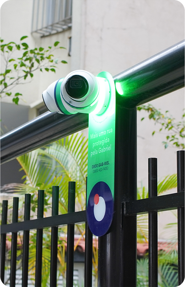 A Gabriel instala câmeras de segurança (nossos Camaleões 2) em imóveis privados, sempre com foco para espaços públicos. Ao conectar uma câmera à outra, a Gabriel cria a sua Área de Proteção para ajudar os nossos protegidos (os clientes da Gabriel) e auxiliar as autoridades competentes a buscar por veículos furtados ou roubados, compreender dinâmicas criminais e servir inteligência para toda a região.